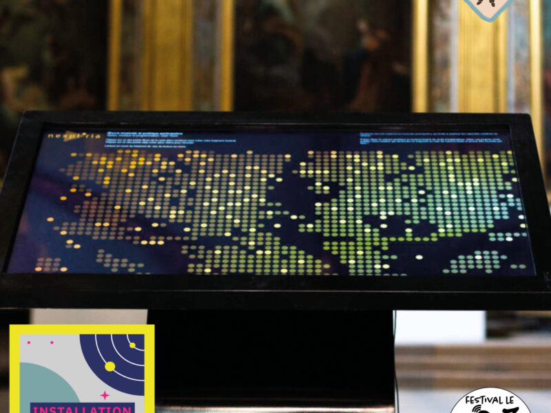 Prochainement Oeuvres numériques participatives au Musée Alfred-Canel Conception du projet, textes Gaël Tissot Une invitation au rêve entre poésie, son, ... du samedi 28/03 au samedi 11/04 Installation - Nexploria de Gaël Tissot