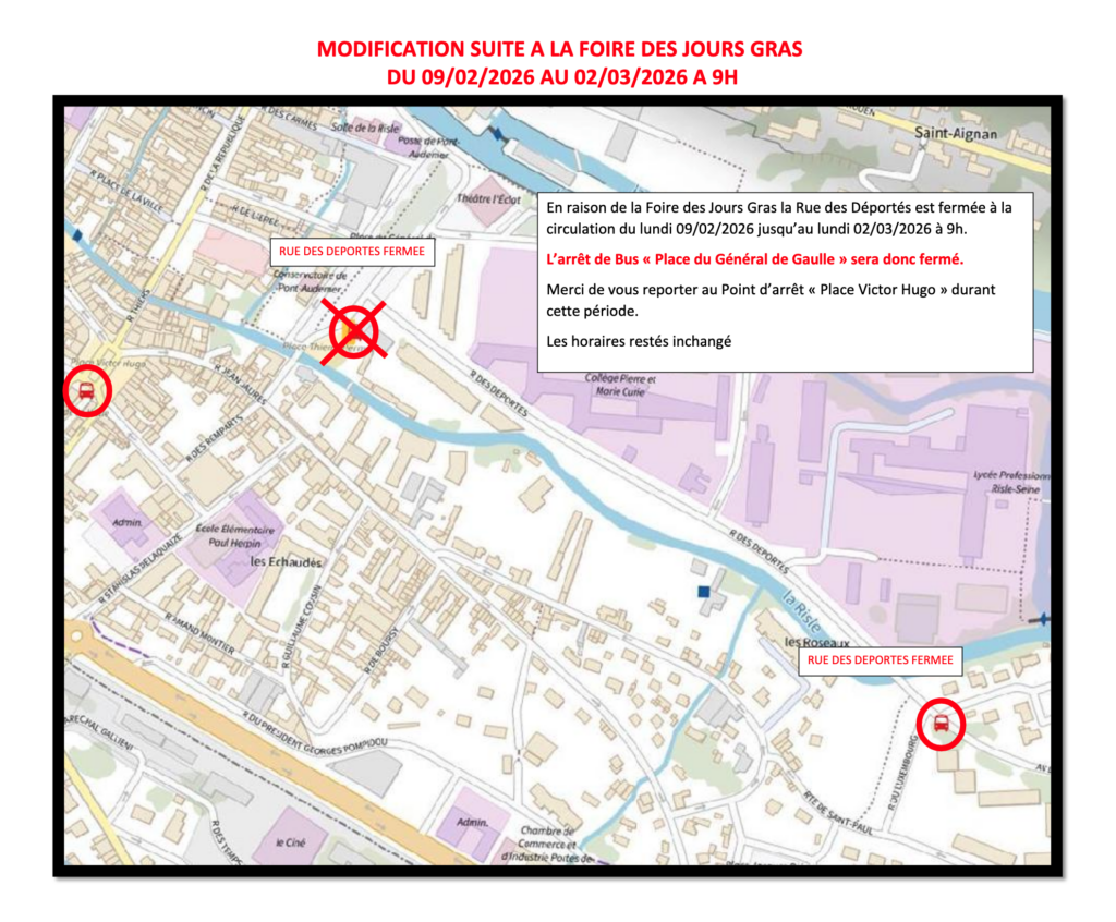 ⚠️En raison de la Foire des Jours Gras, la rue des Déportés sera fermée à la